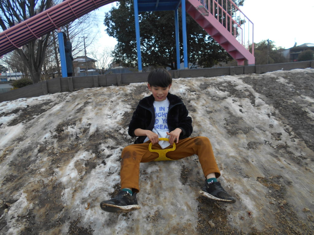 ズボンまで泥だらけになってしまいましたが、何度も何度も滑っていました❄️