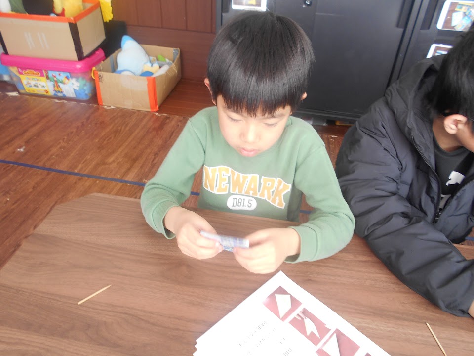 まずは、「凧作り」です😊