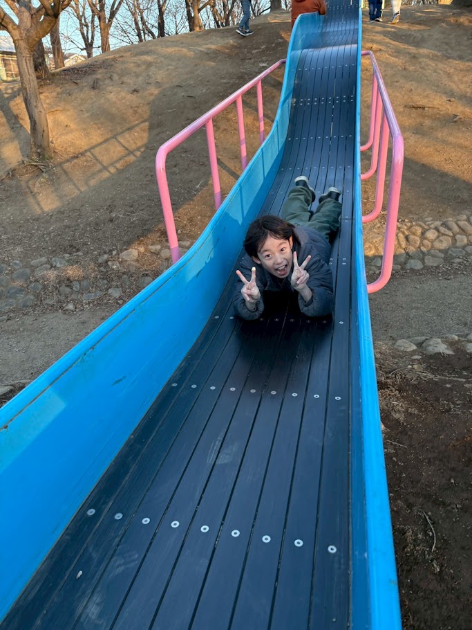 名物の滑り台をたのしんでいます。